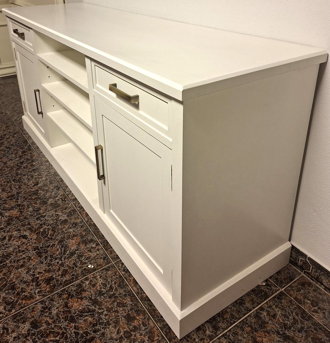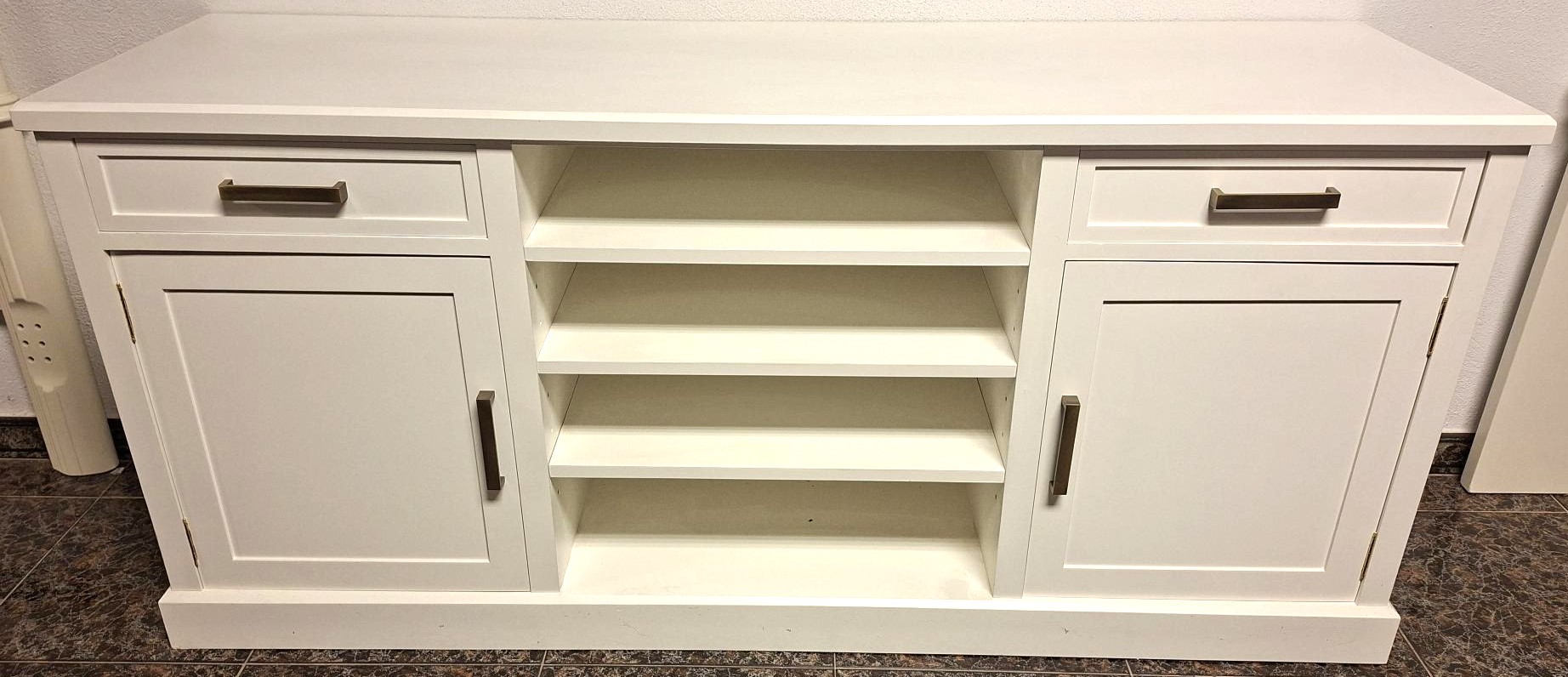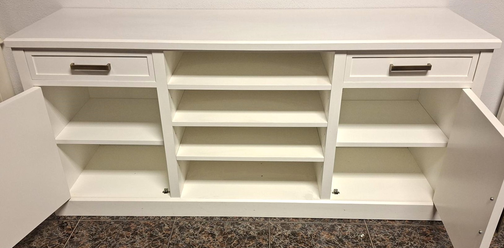 APARADOR LACADO BLANCO CON 2 CAJONES Y 2 PUERTAS PARTE CENTRAL CON BALDAS , MEDIDAS 168 X 50 X 77