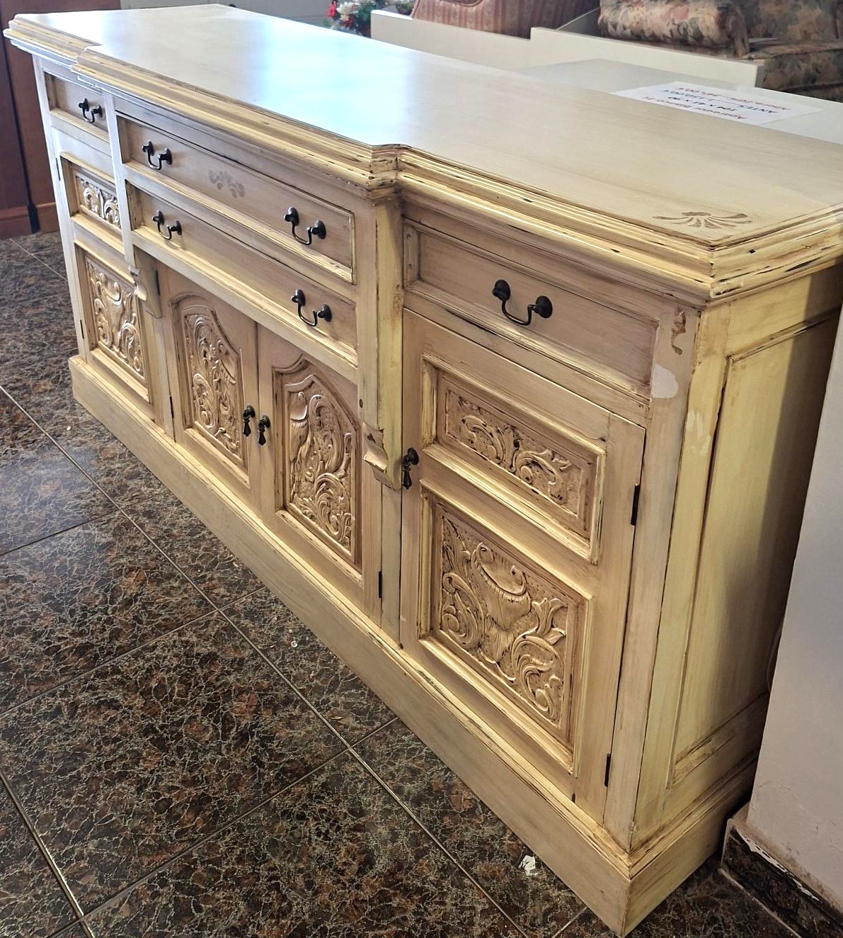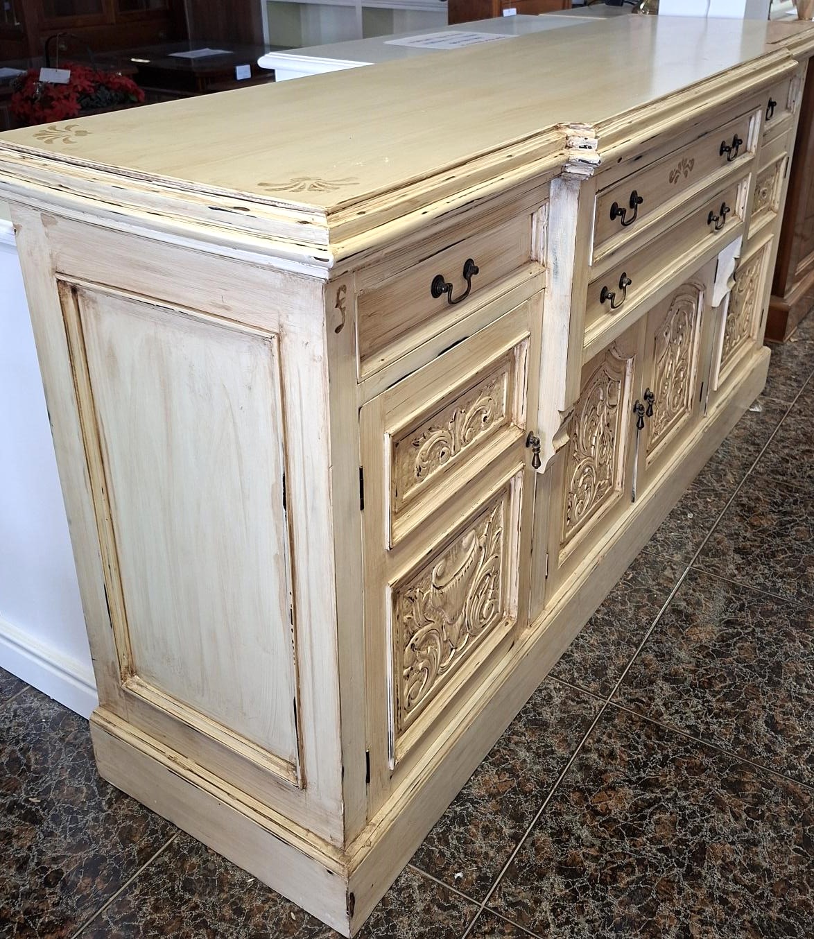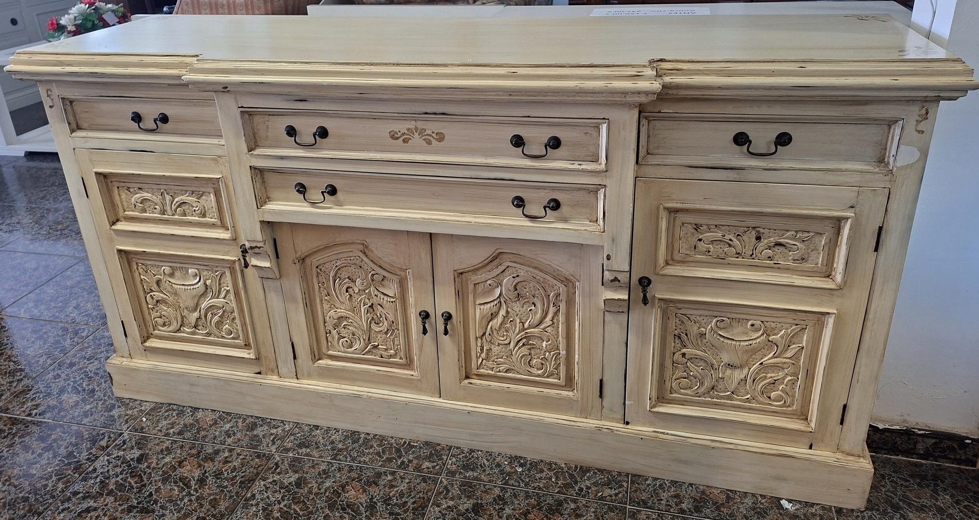 APARADOR RESTAURADO DE CAOBA LACADO EN COLOR MARFIL PATINADO VER FOTOS, MEDIDAS 182 X 52 X 92