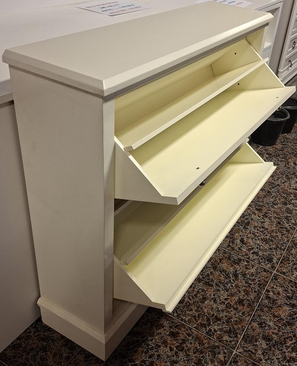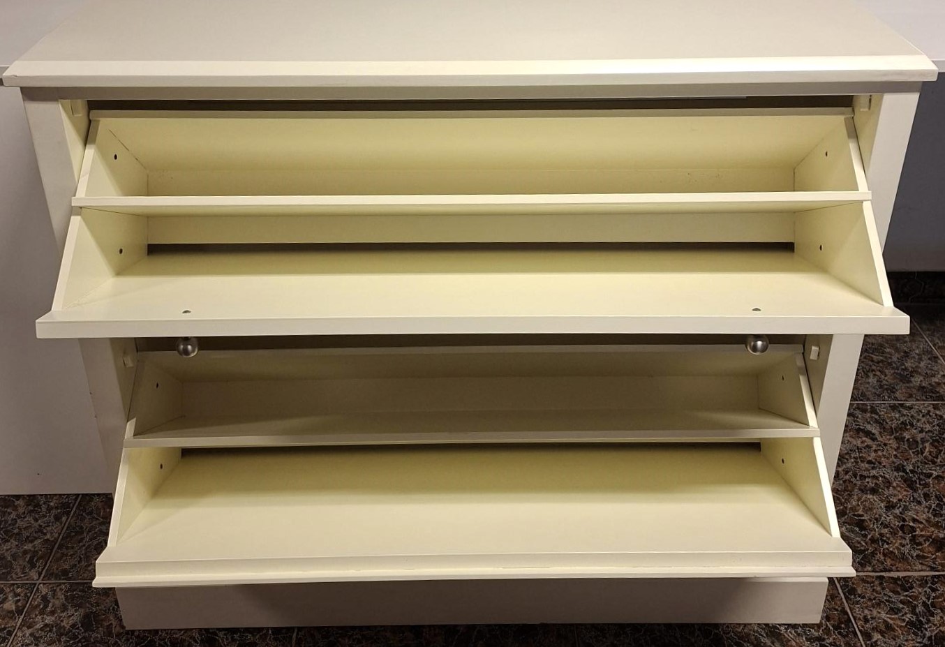 MUEBLE ZAPATERO CON 4 BANDEJAS PARA ZAPATOS LACADO EN COLOR MARFIL CREMA , MEDIDAS 102 X 26  X 86